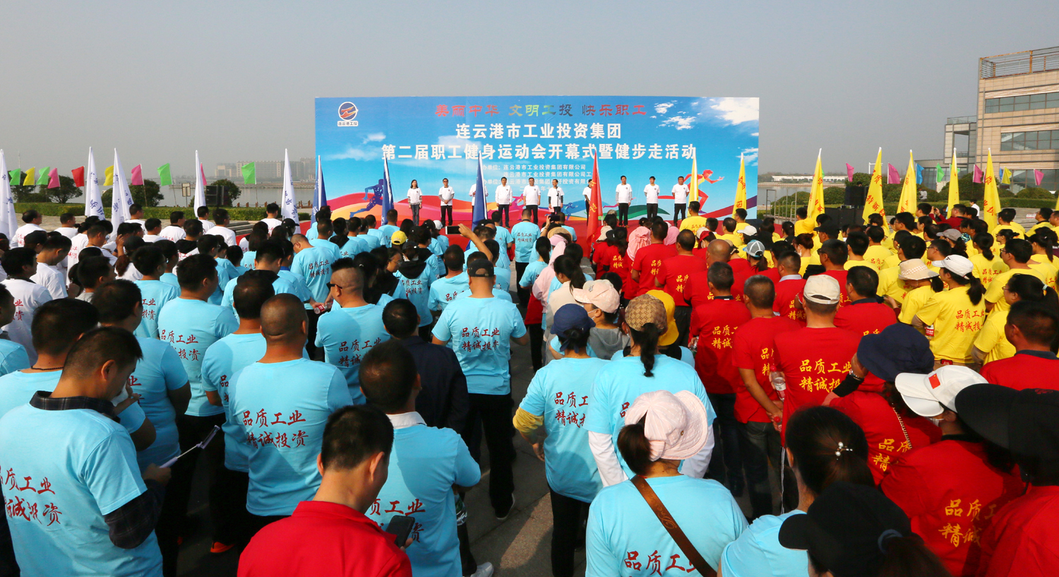 金秋十月,丹桂飄香。1024日上午,美麗的徐圩新區云湖廣場彩旗招展,歌聲飛揚,為慶祝中華人民共和國成立70周年,豐富職工業余文化生活,由集團公司、集團公司工會主辦,徐圩投資公司承辦的集團第二屆職工健身運動會開幕式暨健步走活動在這里隆重舉行。集團公司黨委書記、董事長楊龍宣布第二屆職工健身運動會開幕,并為健步走活動發令。總經理胡建明致開幕詞。工會主席劉承志主持開幕式。