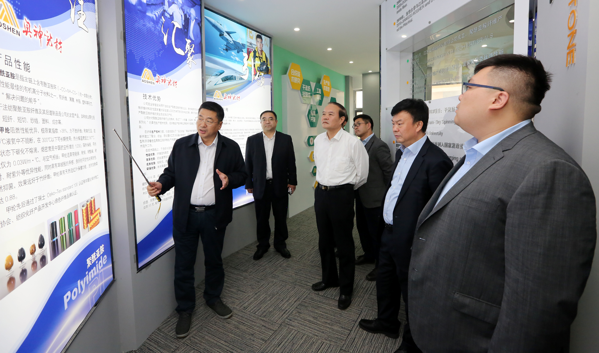 10月24日下午,中信產業投資基金管理有限公司總裁田宇一行在連云港市副市長尹哲強的陪同下在集團奧神新材料、氨綸公司考察調研,并與集團公司董事長、黨委書記楊龍就雙方合作事宜進行了深入洽談、全面對接。