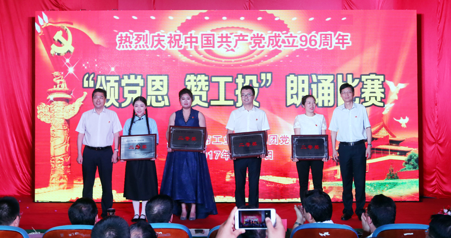 為慶祝中國共產黨成立96周年,緬懷黨的豐功偉績,629日下午,集團公司黨委在連云港職業技術學院文化藝術中心舉辦“頌黨恩·贊工投”朗誦比賽,集團公司領導楊龍、胡建明、張其海、王士華、戴鴻鳴、汪群、匡友本、陳如軍與來自集團公司各條戰線的近三百名代表歡聚一堂,共同慶祝黨的96歲華誕。