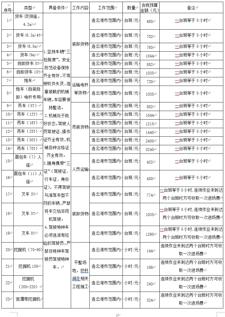 2.采購內(nèi)容:連云港工投集團(tuán)供電工程分公司機(jī)械、車輛租賃