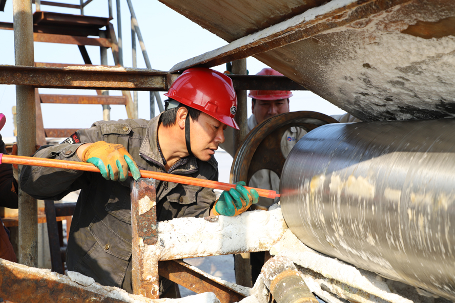 實(shí)干重于言談。王緒華,話不多,中等個,黑黑的臉龐印刻著歲月留下的滄桑。作為企業(yè)的一名普通一線員工,對企業(yè)克盡職守,對工作堅(jiān)守執(zhí)著,從不輕言放棄,他常說的一句話就是“做一件事不管有多大,一定要做好”。王緒華修理鹽業(yè)機(jī)械的技術(shù),不只限于排除一般性機(jī)械故障,就連最新式的鹽業(yè)機(jī)械改裝他也敢碰。2012年,他所在的日曬制鹽公司推進(jìn)扒鹽機(jī)械化,用機(jī)械扒鹽代替人工扒鹽。但是,扒鹽過程中,扒鹽機(jī)械經(jīng)常出現(xiàn)故障,維修人員整天忙于維護(hù),嚴(yán)重影響了扒鹽的進(jìn)度,加重了職工的勞動負(fù)荷。不善言語的他,看在眼里,急在心里;當(dāng)他聽說別的鹽場正在使用新式帶鹵扒鹽機(jī)械時,立刻帶人動手制作,一次、二次,兩次不行,再來三次,經(jīng)過一個月反復(fù)的試驗(yàn),機(jī)械帶鹵扒鹽技術(shù)正式運(yùn)用于日曬制鹽生產(chǎn)中,實(shí)現(xiàn)了常年扒鹽,使每個扒鹽班組人員由12人降至4人,大大節(jié)約了扒鹽成本。