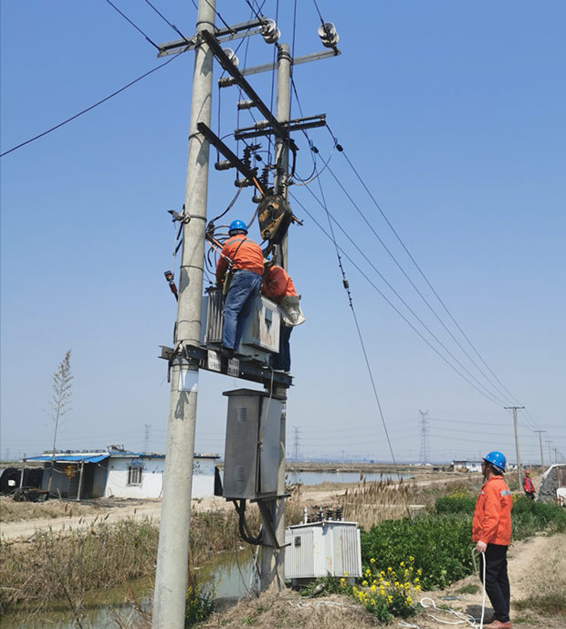 近年來,淡水養殖不斷擴大高密度養殖規模,充氧設備逐漸增加,夏季高溫臺變用電負荷大增,養殖區部分變壓器不堪重負。為了保障廣大養殖用戶生產生活用電,確保供電設備經得起高溫負荷的“烤”驗。當天上午八點半,在辦理好相關停電手續,停電、驗電、安裝接地線、安全交底等各項準備工作的基礎上,在組長余榮欣的統一指揮下全組人員克服困難開始拆除舊變壓器,吊離變壓器,安裝新變壓器……經過近5個小時奮戰,順利完成2處變壓器更換安裝工作任務,提前做好迎峰度夏“保衛”工作。