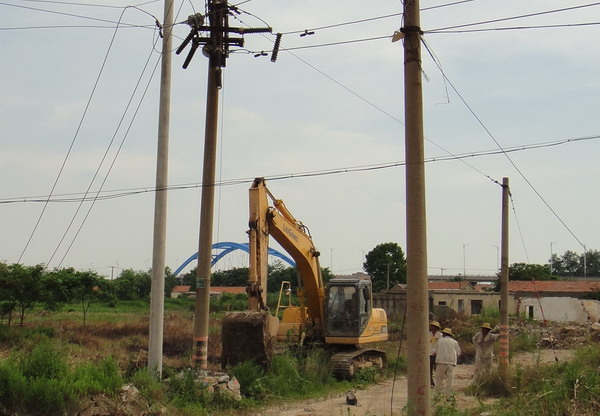 當(dāng)日上午9時,室外溫度高達(dá)35攝氏度,板橋、板橋工業(yè)園等片區(qū)突發(fā)停電。人們被迫從空調(diào)房中走出來,匆匆忙忙尋找避暑的地方。臺南供電所負(fù)責(zé)人接到報告后,迅速啟動應(yīng)急搶修預(yù)案,并立即安排人員分頭查找停電原因。經(jīng)過認(rèn)真巡視檢查,終于發(fā)現(xiàn)了停電原因:金港灣物流園“板橋線”75#變壓器附近的59#電桿,由于挖掘機(jī)施工時操作失誤而倒地,并導(dǎo)致同向4根線桿倒地斷裂,造成轄區(qū)內(nèi)大面積停電。要恢復(fù)正常供電,必須重新架設(shè)電桿。于是,該所領(lǐng)導(dǎo)立即通知相關(guān)工作人員,組織準(zhǔn)備相關(guān)設(shè)備、器材。10時許,副所長朱兵帶領(lǐng)搶修人員和準(zhǔn)備齊全的設(shè)備器材,趕往現(xiàn)場進(jìn)行搶修。