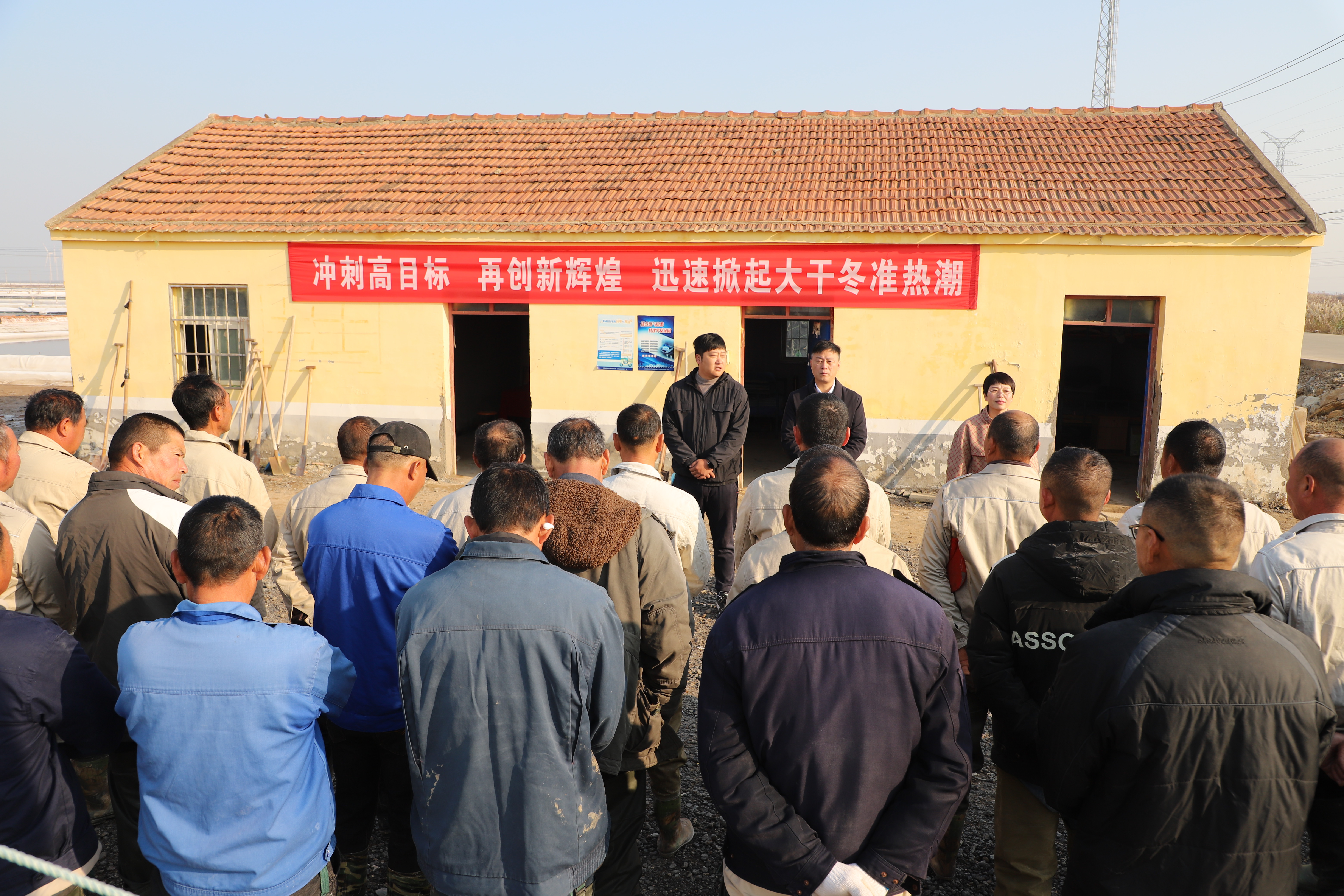 在新河制鹽分公司12班灘頭,常務副總經理徐一林對冬準工作提要求,總經理吳衛平宣布“‘薪火灌筑 匠星西傳’師徒結對擂臺賽”正式開始!