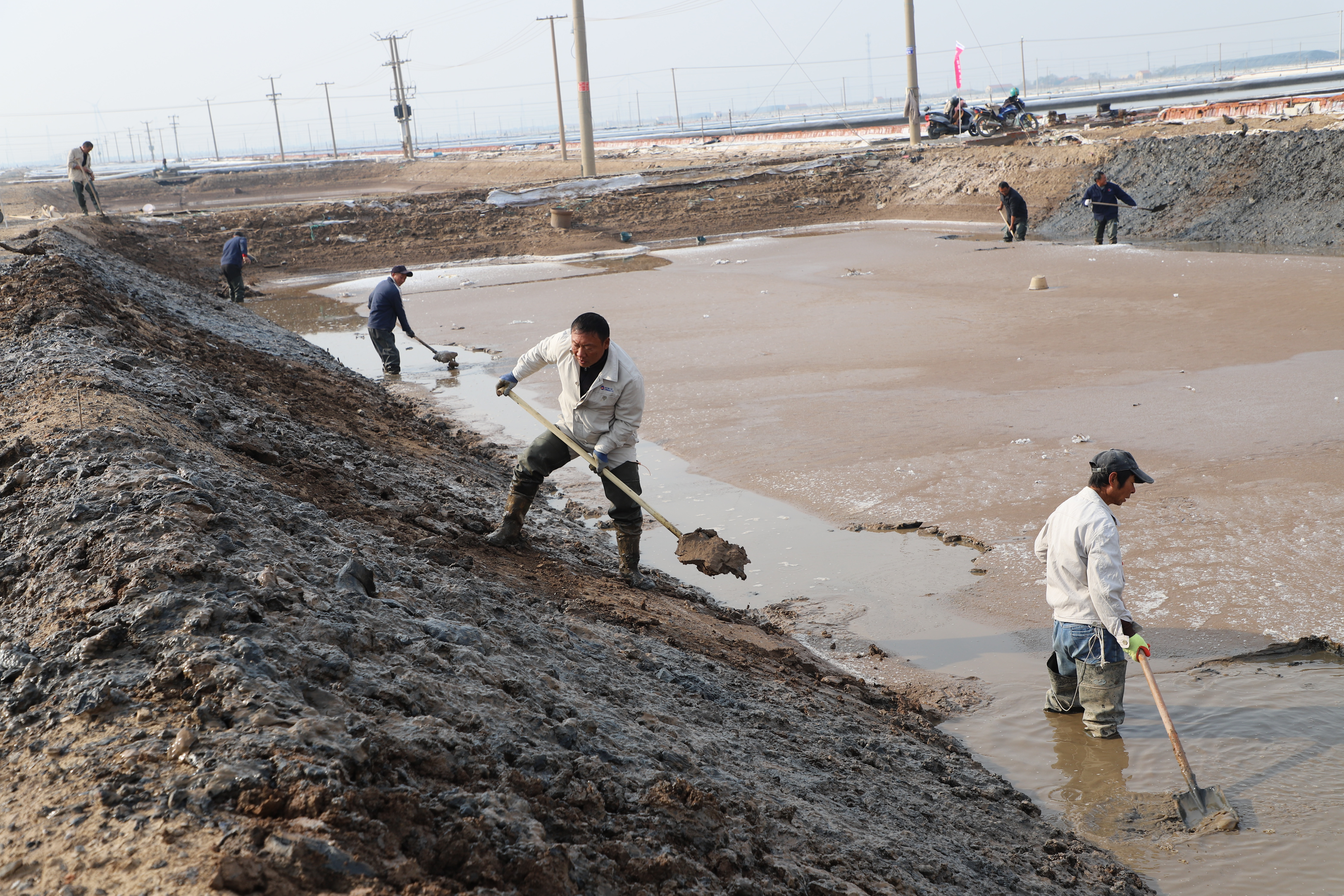 寒冬時節,暖陽之下,鹽廩之旁,曬得黝黑的鹽場產業工人們按照競賽的考核標準,做熟泥、打堰墻、做堰頂,護埝頂、夯埝坡、清塘底,見證了一場技能比拼的盛會。經過一天的鏖戰,盧正兵、靳新邦、匡洪忠師徒取得了池堰修整的前三名;林樹軍、潘成軍、胡繼華師徒取得了土塘清淤的前三名。(西工)