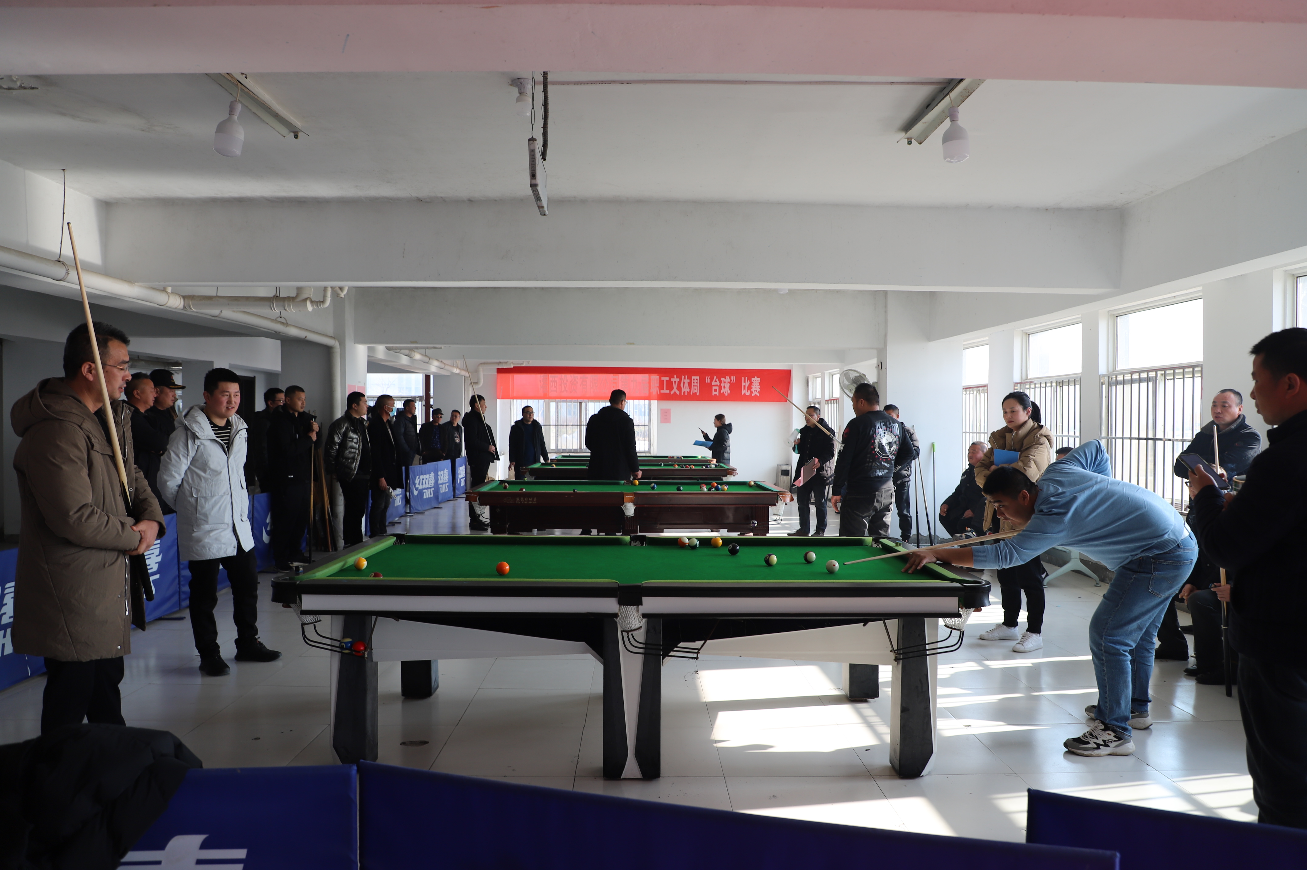 12月21日下午,臺(tái)球比賽在裁判員一聲令下正式開(kāi)始,來(lái)自各個(gè)單位56名選手,分為8組進(jìn)行比賽,采取單循環(huán)淘汰規(guī),小組內(nèi)進(jìn)行逐對(duì)“廝殺”,小組前兩名出線。比賽過(guò)程相當(dāng)激烈,有的眾多高手被分在一組,俗稱“死亡之組”,每個(gè)人臉色凝重,場(chǎng)外圍滿了觀眾;有的爆出“冷門”,去年獲得第一名的選手第一輪慘遭淘汰;有的選手比較緊張,洞門門口球都沒(méi)有打進(jìn)。經(jīng)過(guò)激烈角逐,共有16名選手出線。
