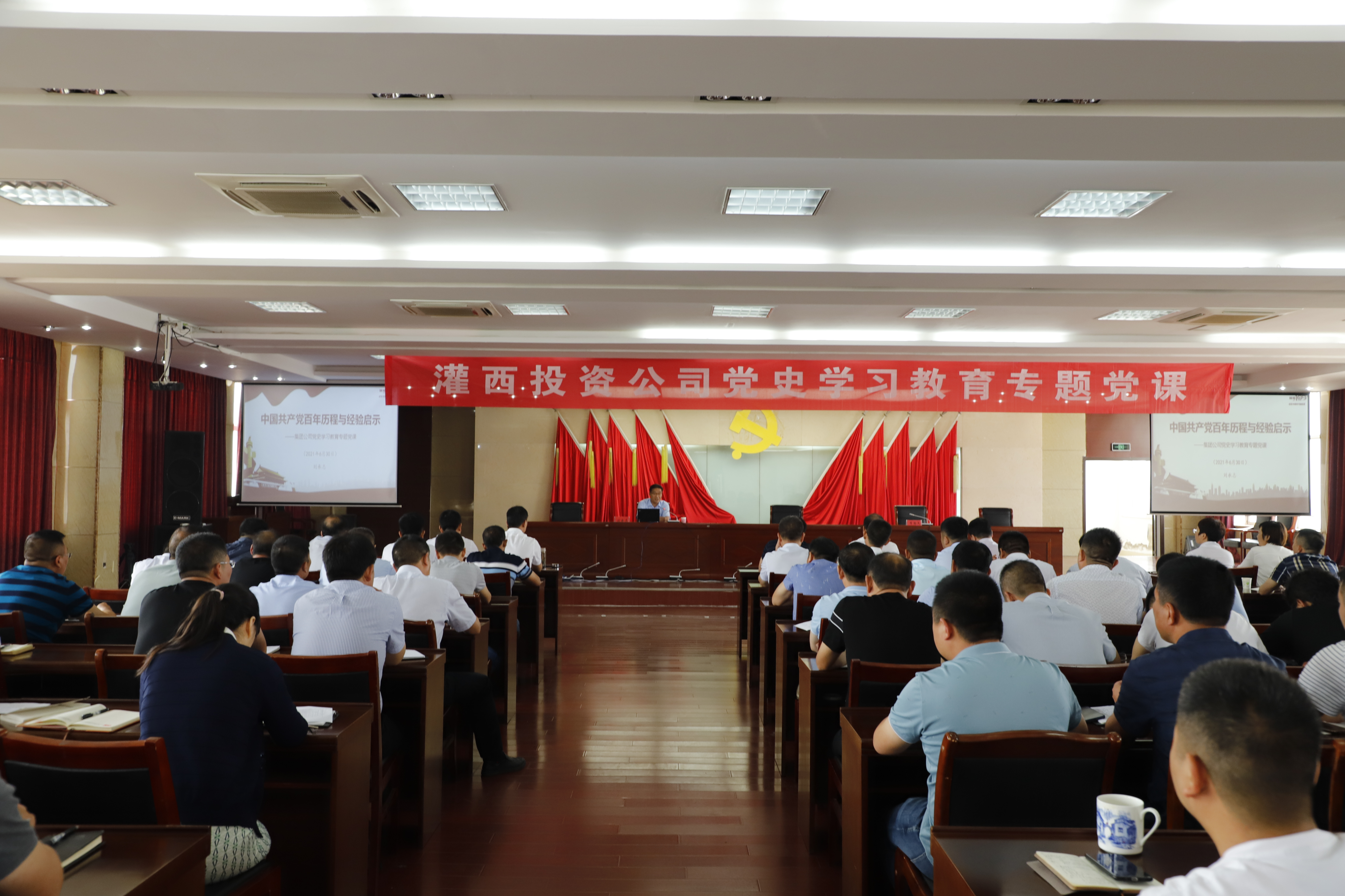 按照集團公司統一安排部署,推進黨史學習教育走深走實,6月30日上午,灌西投資公司舉辦黨史學習教育專題黨課學習會。集團工會主席劉承志以“中國共產黨百年歷程與經驗啟示”為題專題授課。投資公司領導班子成員、各單位黨政負責人、機關全體黨員參加學習。灌西投資公司黨委書記、董事長、總經理李國文主持會議。