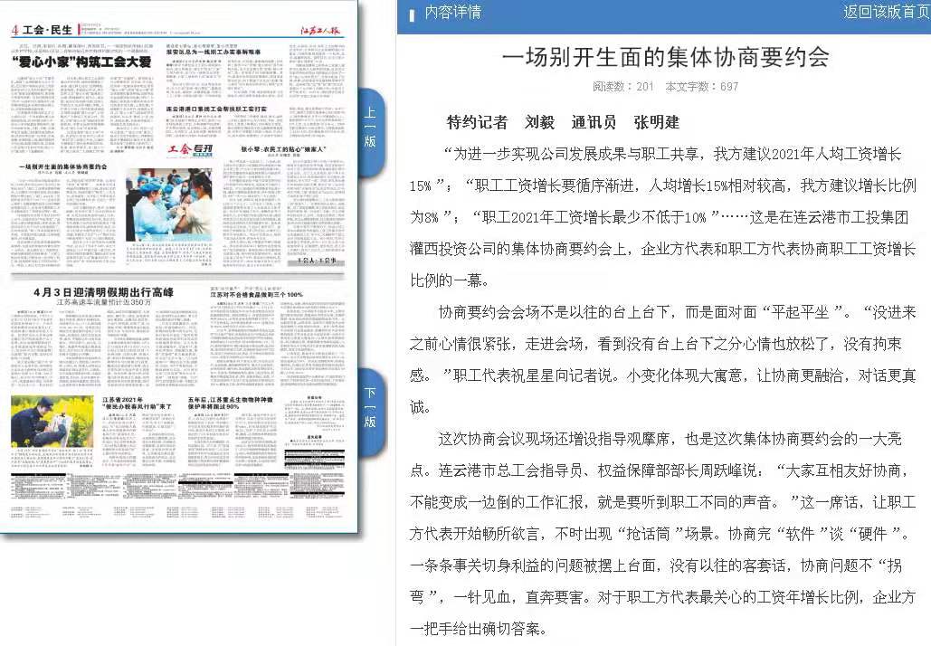 《江蘇工人報》刊登——一場別開生面的集體協商要約會