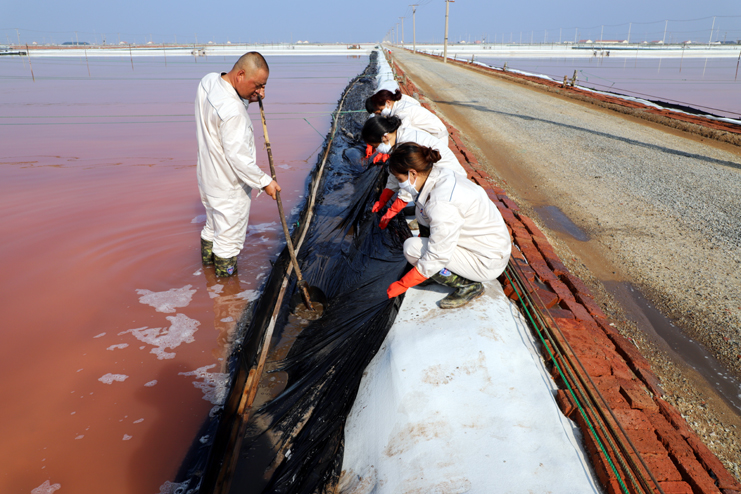 熱、熱、熱!進入8月以來,持續高溫逼著人喘不過氣來,給生活生產帶來了嚴重的影響。筆者日前深入到日曬制鹽公司,見證了為保生產頂著酷暑堅守在一線崗位上的勞動者,并深深地被制鹽工人火熱的工作場景所感動。在這個驕陽似火、熱浪襲人的夏天里,制鹽工人的熱情和干勁,勝過了熾熱的高溫。