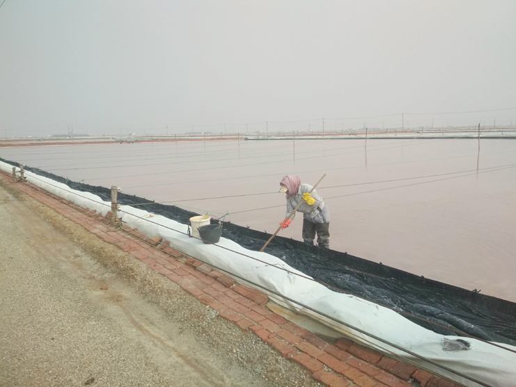 每一個(gè)女孩都喜歡美麗的衣服,都喜歡把自己裝扮得漂亮迷人。可是工作的特殊性不允許鹽灘工“貌美如花”。周娟,37歲,新河制鹽分公司5班一名普通的女工,她關(guān)注班組集體事務(wù),能夠團(tuán)結(jié)、關(guān)心班組女工,并積極帶領(lǐng)女職工昂揚(yáng)向上,奮發(fā)有為,為單位鹽業(yè)生產(chǎn)多作貢獻(xiàn)。周娟特別注重對新上崗的員工培訓(xùn)教育工作,她總是不厭其煩講解原鹽操作流程及工作中的注意事項(xiàng)和安全隱患,毫不保留將自己多年的經(jīng)驗(yàn)傳授給大家。炎熱的夏天,當(dāng)大家坐在辦公室,吹著空調(diào)、喝著冰水時(shí),她和她的同事依舊在鹽灘忙碌著,嬌嫩的皮膚被曬得黝黑。盡管如此,她依然每天駕駛著活茬機(jī),一遍又一遍地游走在鹽田,將汗水撒在工投。