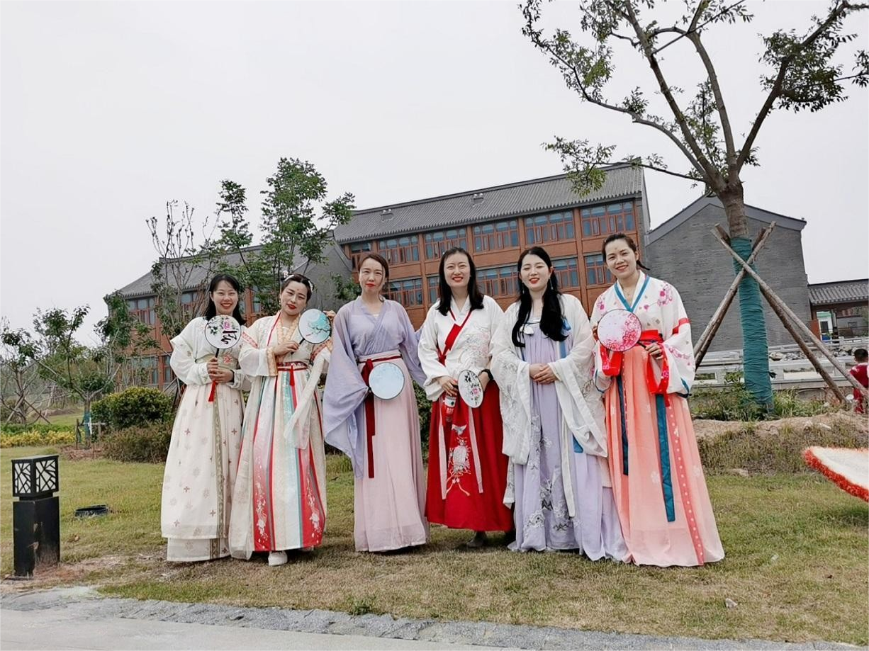 活動現(xiàn)場,來自金融板塊各部門的20余名員工,身著漢、唐、宋、明不同形制華美優(yōu)雅、端莊秀麗的漢服,攜手起舞,漫步在園博園的各個角落,為這個現(xiàn)代都市帶來了一抹醉人、古樸的文化氣息。著漢服的員工們重溫古代禮儀和儀式,感受中華文化的深厚底蘊(yùn)。還開展了誦讀經(jīng)典、繡荷包、刺五毒、趣味吃粽子、“粽”橫四海等豐富多彩的端午主題文化活動,充分展現(xiàn)了員工生動的活力和熱情。在錦鯉游動、荷塘月色、彩蝶翩翩的園內(nèi),大家沉浸于濃濃的中華古風(fēng)之中,用心感受著中華傳統(tǒng)文化的獨(dú)特魅力。此次活動展現(xiàn)了增強(qiáng)員工的凝聚力和歸屬感,為公司的發(fā)展注入了新的活力。