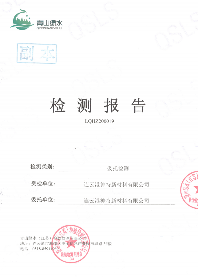 神特公司檢測報告公示