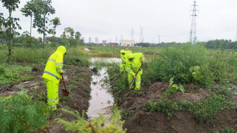 益豐園林分公司立即成立防汛應(yīng)急黨員志愿隊(duì)伍,及時(shí)排查80畝苗圃基地水情。黨員同志們發(fā)揮先鋒模范作用,面對(duì)風(fēng)雨交加的環(huán)境奮勇?tīng)?zhēng)先,清雜草疏通水道、開(kāi)挖排水溝加強(qiáng)排水、清理倒伏樹(shù)木……不畏艱難不怕臟累,用實(shí)際行動(dòng)展現(xiàn)黨員擔(dān)當(dāng);裕達(dá)分公司強(qiáng)化汛期值班值守,雙人加強(qiáng)值班,多頻次安全巡視,特別是對(duì)德蘭光伸市場(chǎng)商鋪及院內(nèi)廠房開(kāi)展點(diǎn)對(duì)點(diǎn)排查,期間多次對(duì)院內(nèi)排水管道及時(shí)疏通清理,防止管道堵塞雨水倒灌發(fā)生;美多利第一時(shí)間啟動(dòng)防汛排澇應(yīng)急預(yù)案,安排黨員突擊隊(duì)在園區(qū)易積水點(diǎn)提前布置排水設(shè)施,清除雜物雜草堵塞,確保排水渠通暢,切實(shí)把強(qiáng)降雨對(duì)入駐企業(yè)的影響降到最低;資源分公司一方面全力做好保鹽保鹵工作,加強(qiáng)結(jié)晶區(qū)排水作業(yè),做好防風(fēng)措施,確保鹽、鹵安全。另一方面,養(yǎng)殖辦積極巡視水情、池塘溝堰巡查,加強(qiáng)與養(yǎng)殖戶聯(lián)系,及時(shí)處理積水,全力做好防澇服務(wù)。