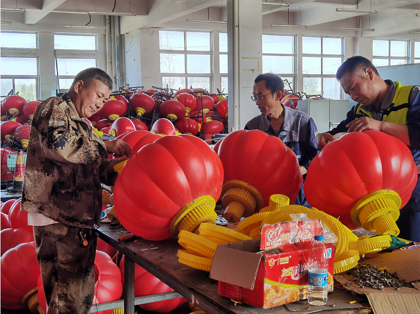 中秋國慶雙節(jié)將至,翔立分公司承接了LED燈籠和中國結(jié)的安裝工程。由于燈籠長期重復使用,部分配件已經(jīng)損壞、丟失,為了保證工程進度,趕在中秋節(jié)前完成燈籠和中國結(jié)的安裝工作,翔立分公司所有職工和移動抽調(diào)的部分的員工放棄節(jié)假日休息,主動參與燈籠維修工作。所有人分工合作,將壞掉的配件拆掉,換上新的配件,再交由專業(yè)電工測試,確認燈籠完好無損再由安裝人員運輸至路邊安裝。