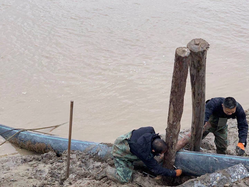 ?一想到昨天管道巡查到這里的情形,現在還讓人“心有余悸”!因管道地處善后河彎道處,常年的泄洪沖刮將河邊覆蓋管道的泥土沖刷卷走,使得岸邊泥土下原本穿越的PE315管道已經暴露出來,退潮時的旋流不斷地沖撞著漂浮起來的鈣液管道,劇烈抖動著的管道不時發出“噗噗的低吼”隨時可能折斷。埒子口潮河段是鈣液東輸灌西管道最長的一節過河穿越,全長約300米。穿越管道如果折斷在河底后果將不可想象、經濟損失也是不可估量的,這一幕讓在場所有人員都為之捏了一把汗!
