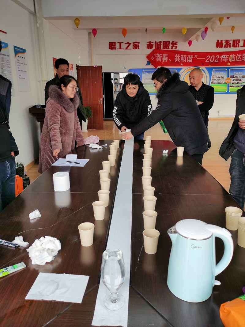 臨達(dá)公司工會(huì)組織開展了“迎新春、共和諧”職工聯(lián)誼會(huì)。本次活動(dòng)以“益智娛樂、休閑健康”為主旨,設(shè)置群龍奪水、你比我猜、卷紙大作戰(zhàn)、繞口令等四個(gè)游戲項(xiàng)目?,F(xiàn)場用氣球、橫幅等布置,洋溢著濃濃的節(jié)日氛圍。