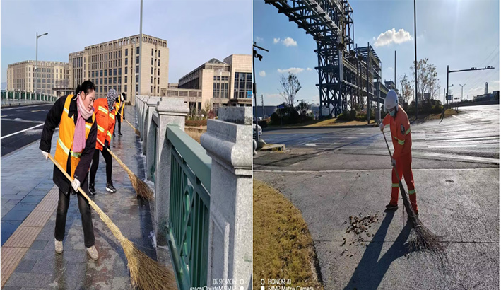 人工保潔“無所畏懼”。該分公司9個班組100多名保潔人員每天在班長的帶動下,無懼徐圩海風吹透身體,盡管手凍僵了,仍然揮動手中掃把清掃園區輔道落葉、泥土1500多米長,清倒各種果皮箱300多個,轉運各類生活垃圾500多包,清洗站臺20多個,清除道路坑塘積水30多處,深冬時節道路人工保潔質效再“升溫”。